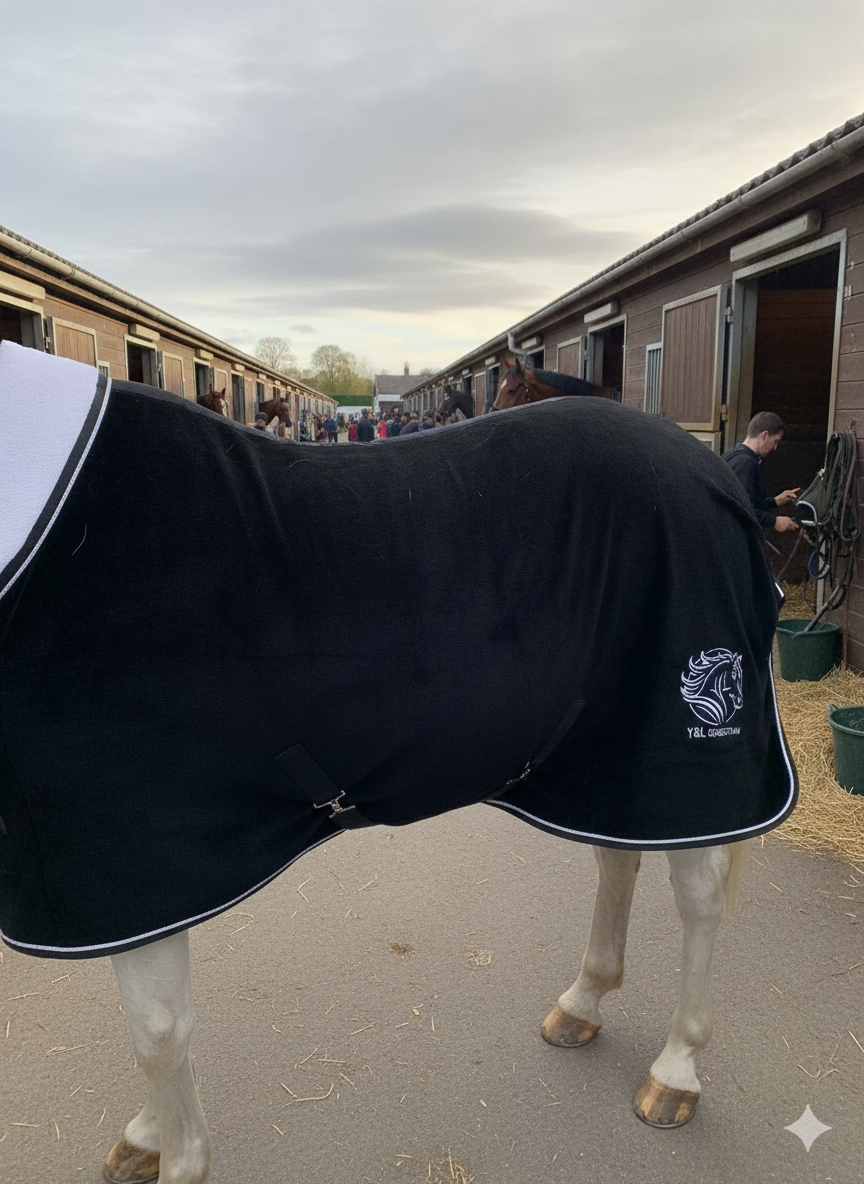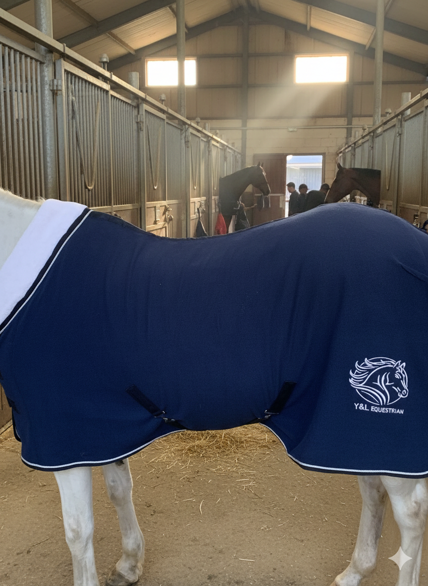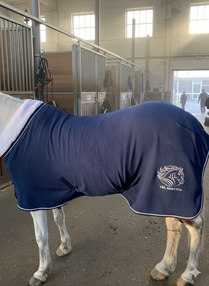 The Y&L Equestrian Horse Fleece Rug with off white soft padded collar is a highquality and stylish equestrian product designed to keep horses warm and comfortable. Made with soft fleece material, this light weight rug provides extra insulation during colder weather conditions, in and out the stable ensuring that the horse stays cozy and snug. The addition of the soft padded collar adds a touch of elegance to the overall design, making it a practical and fashionable choice for horse owners.