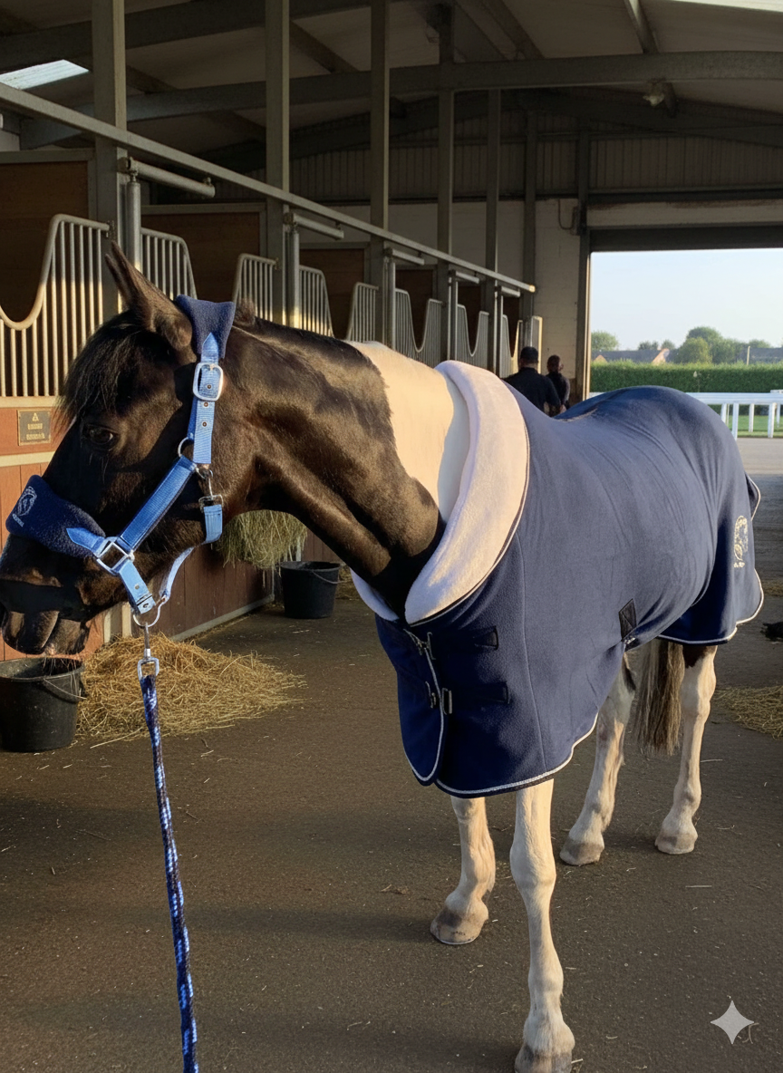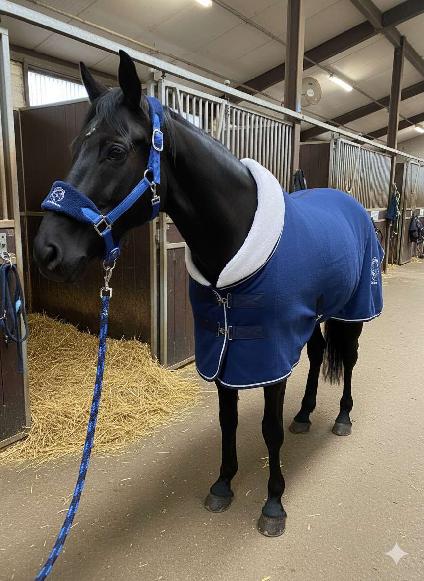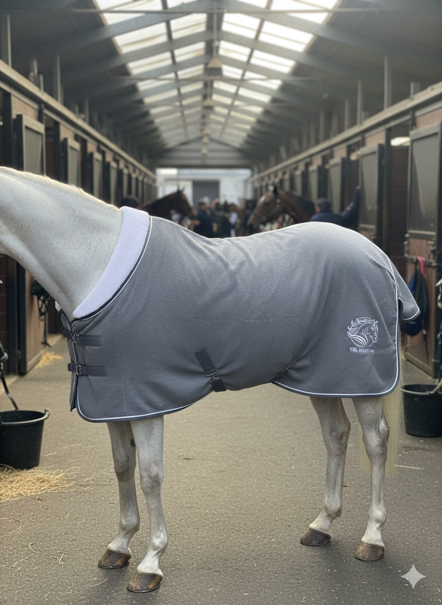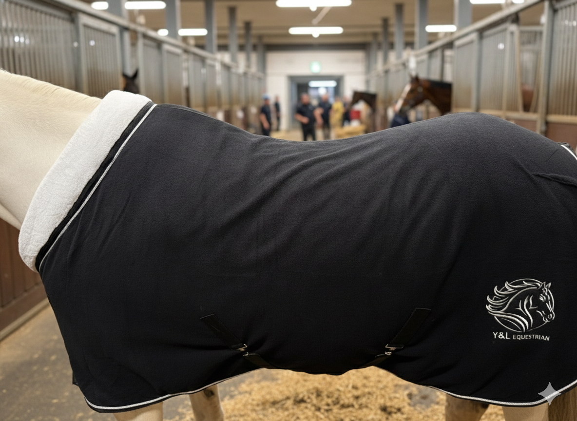 The Y&L Equestrian Horse Fleece Rug with off white soft padded collar is a highquality and stylish equestrian product designed to keep horses warm and comfortable. Made with soft fleece material, this light weight rug provides extra insulation during colder weather conditions, in and out the stable ensuring that the horse stays cozy and snug. The addition of the soft padded collar adds a touch of elegance to the overall design, making it a practical and fashionable choice for horse owners.