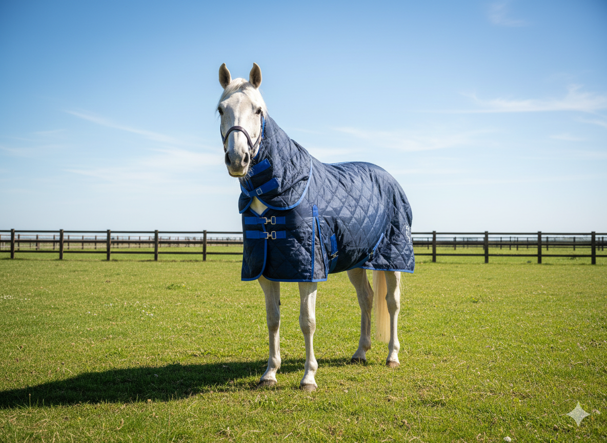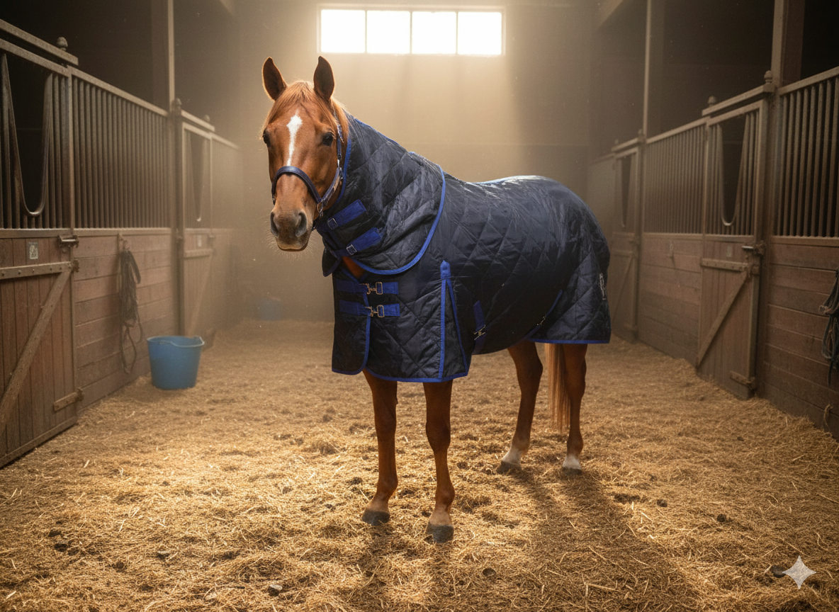 The Y&L Equestrian Stable Rug with Neck Cover is a premium quality horse rug designed for use in stables. With a filling of 220gm, it provides excellent insulation and warmth to keep your horse comfortable during colder weather. The neck cover adds an extra layer of protection and coverage, with esy fastening straps and tail flap, making it a practical and stylish choice for any equestrian enthusiast. Made from durable and high-quality materials, this stable rug is a must-have for any horse owner looking to keep their equine companion cosy and secure